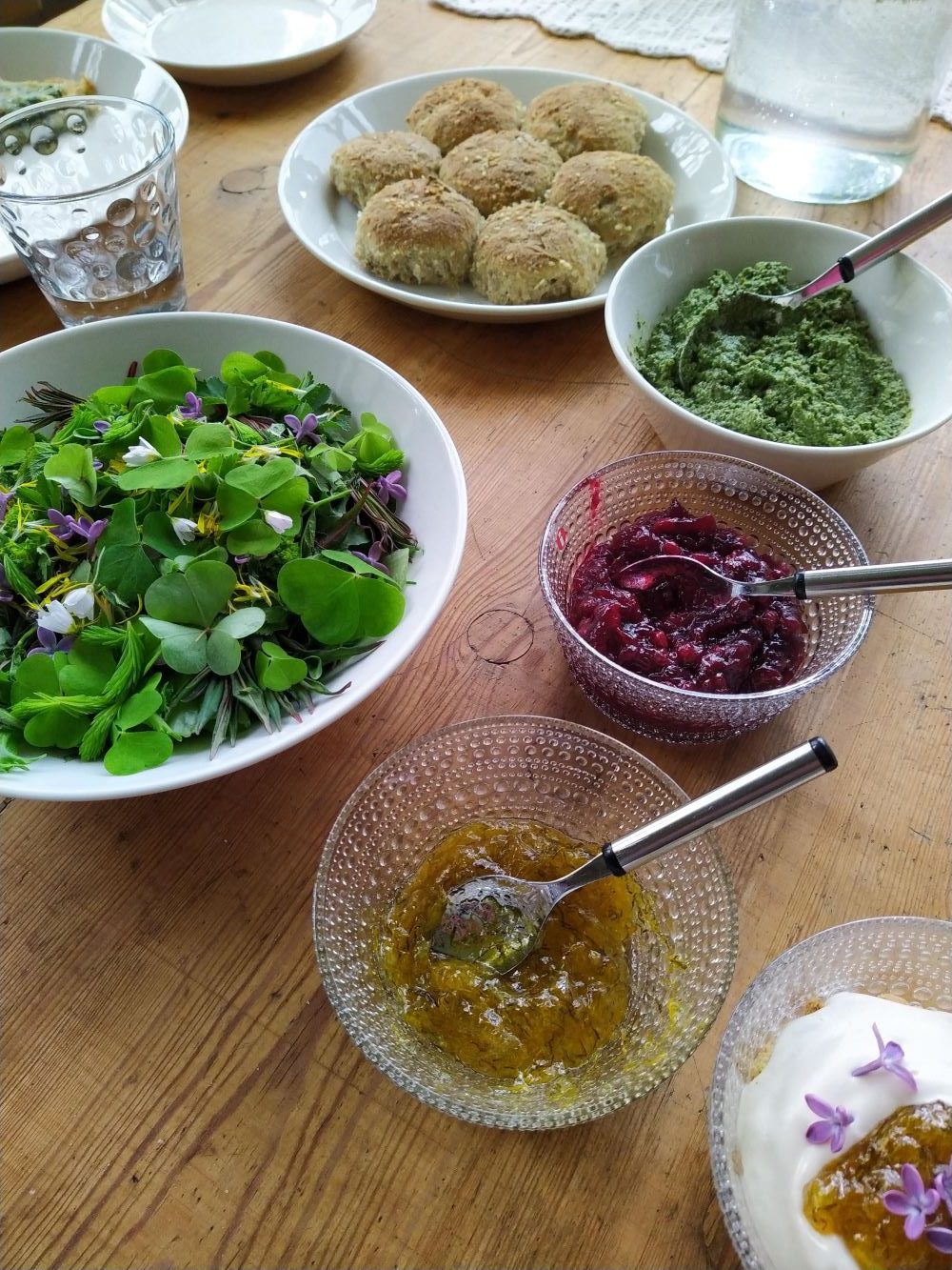 • Päivällisen laatiminen kerätyistä yrteistä. Sisältää pääruoan, salaatin, jälkiruoan, leivät, juomat.